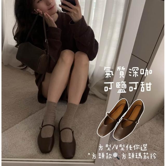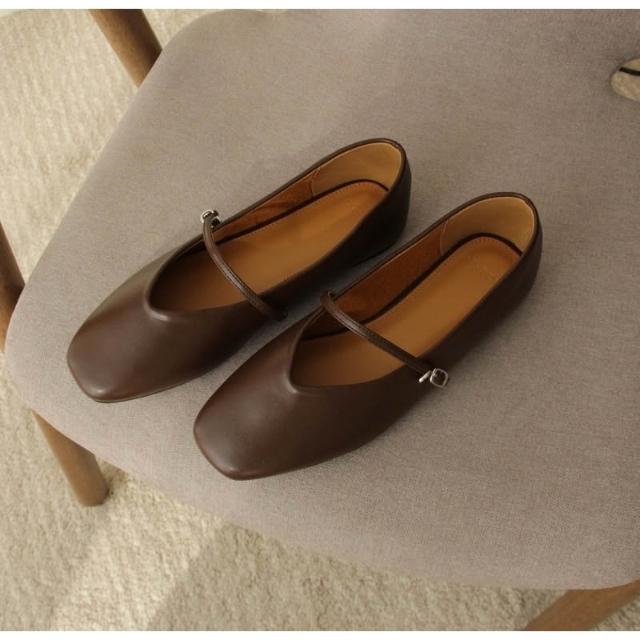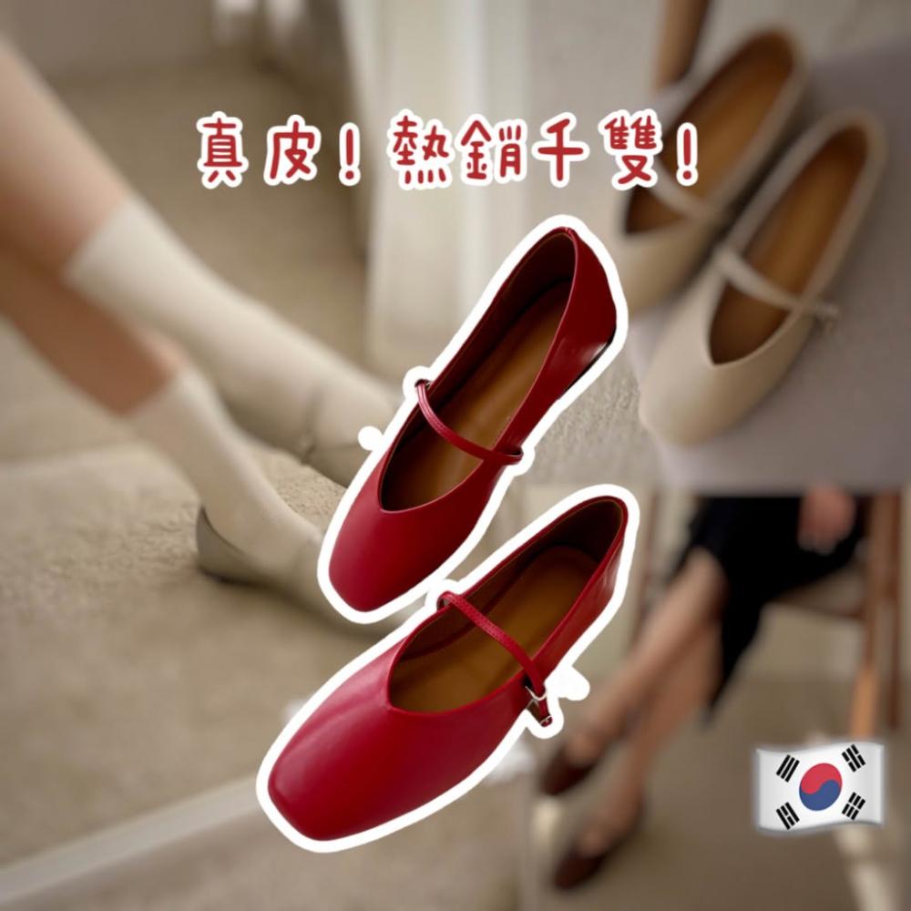 真皮瑪莉珍牛皮娃娃鞋|韓國熱銷|低跟細帶設計|柔軟舒適不磨腳|經典百搭平底鞋|韓國女鞋