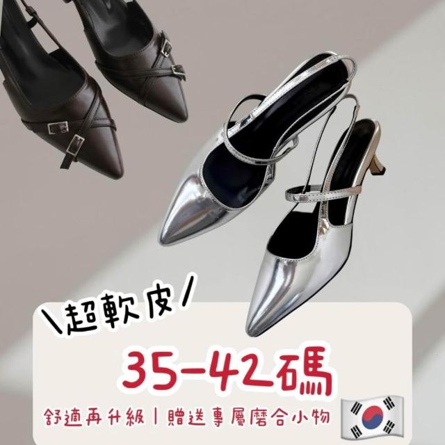 韓國東大門超軟皮尖頭跟鞋|6cm細跟|交叉扣|不磨腳|大尺碼|久走不累|OL |通勤|尖頭鞋