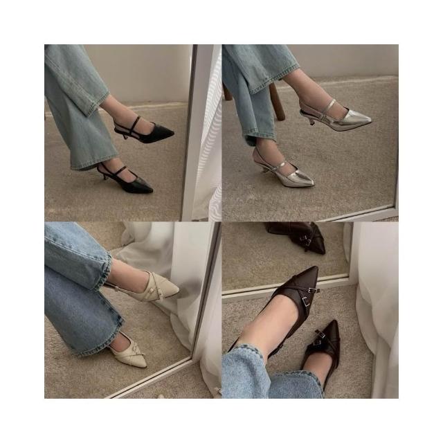 韓國東大門超軟皮尖頭跟鞋|6cm細跟|交叉扣|不磨腳|大尺碼|久走不累|OL |通勤|尖頭鞋