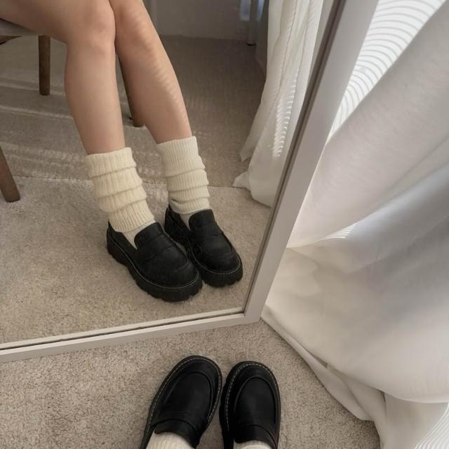 韓國製 羊毛堆堆襪套 坑條 薄款 泡泡襪 兩用 軟綿 羊毛襪 韓國代購 寒流必備 冬天必備 堆堆襪