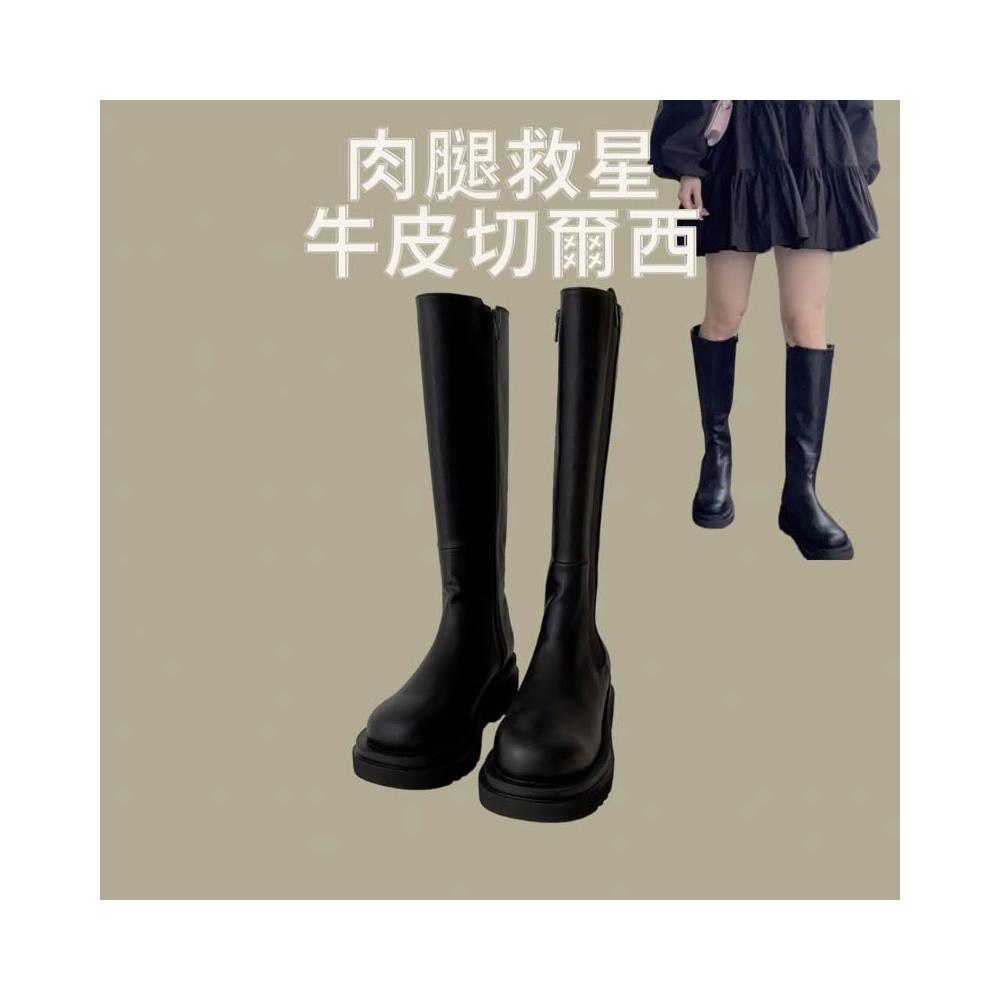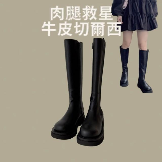 『肉腿友善』牛皮製 切爾西長靴 真皮切爾西 韓國長靴 女靴 瘦瘦靴 長靴 女 韓國代購