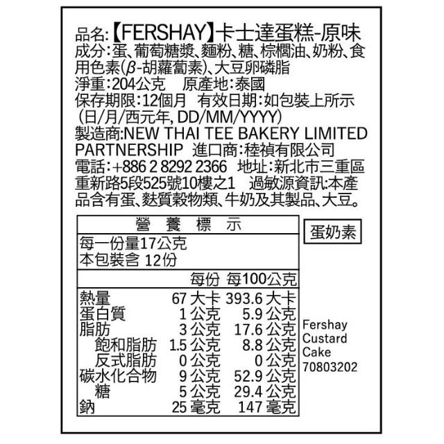 泰國FERSHAY 卡士達蛋黃派 家庭號 夾心派 泰國 東南亞 Custard 零食 派 甜點 巧克力 香蘭