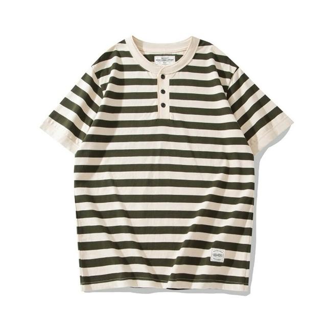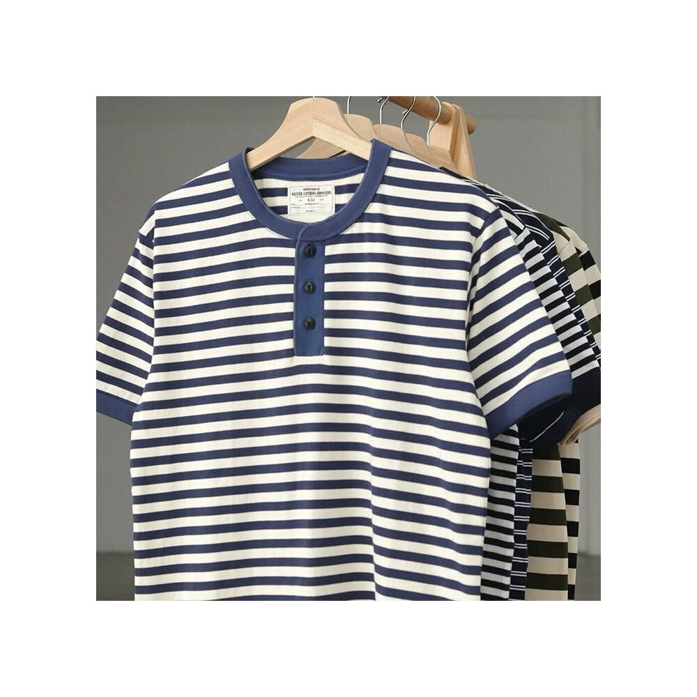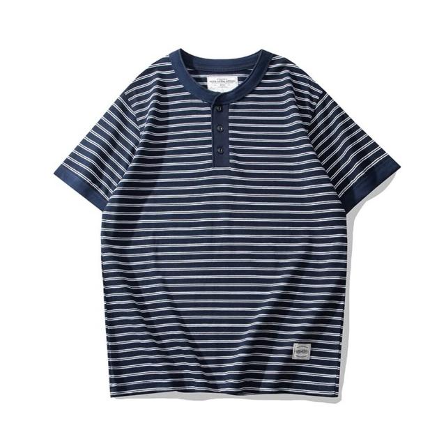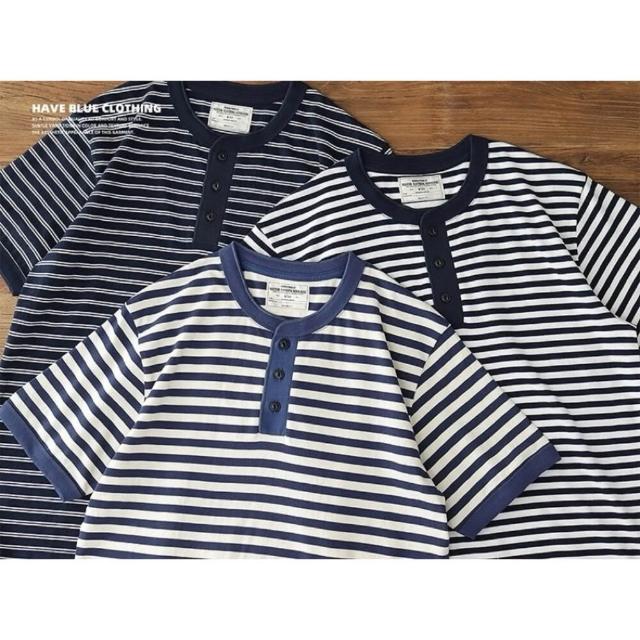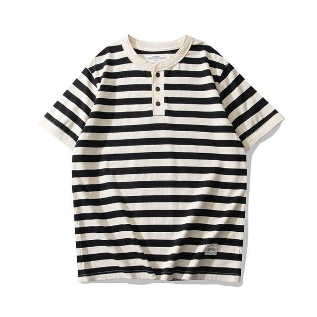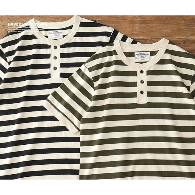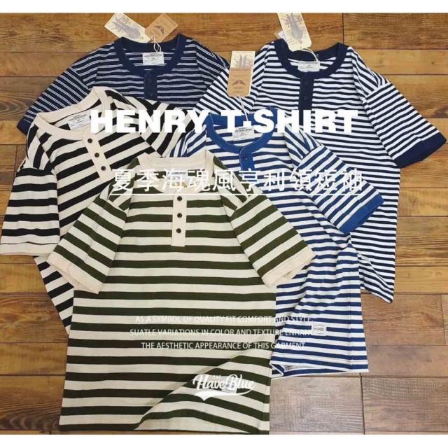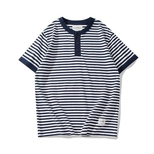 夏季新款雙紗海魂風亨利領 我只賣不透的白T短袖T恤 條紋T 重磅條紋短袖 圓領 純棉 亨利領短袖