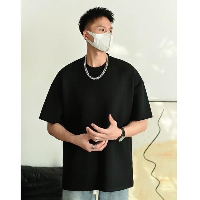 OVERSIZE重磅太空棉小領口短T我只賣不透的白T 290克高密度純棉重磅厚實純色短袖T恤(不透)
