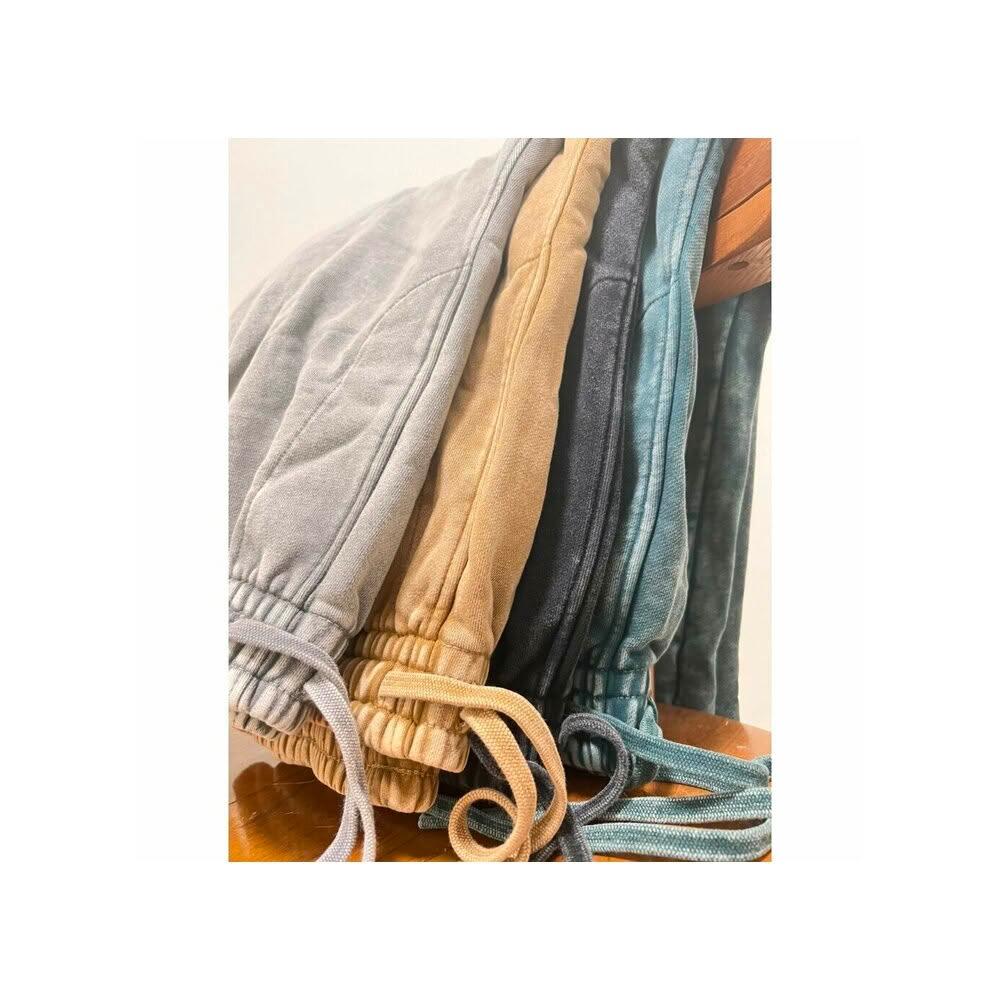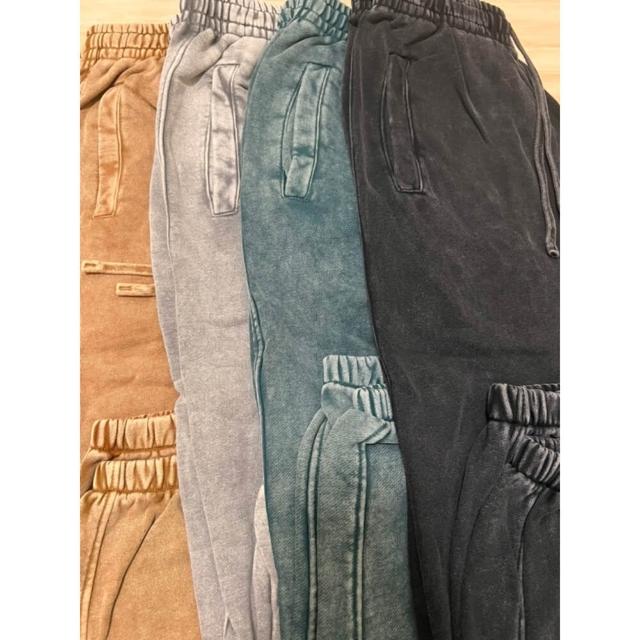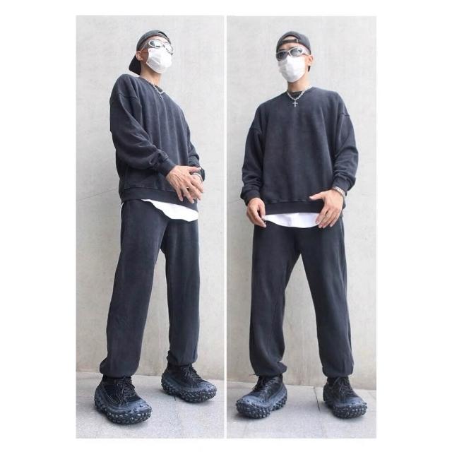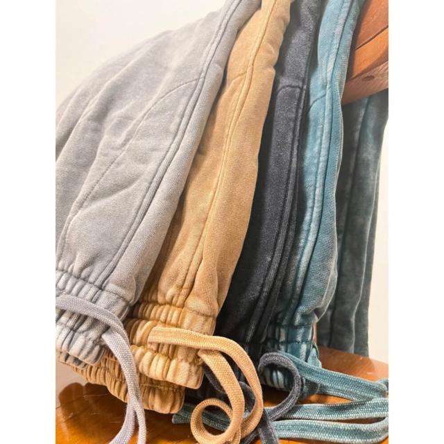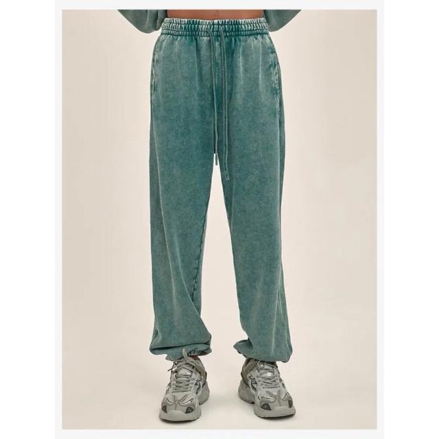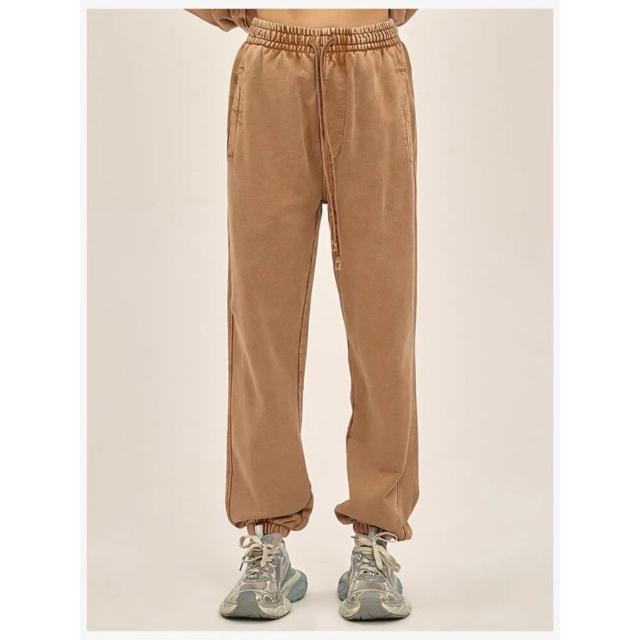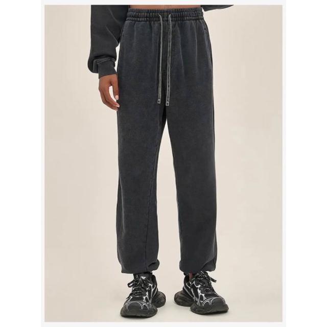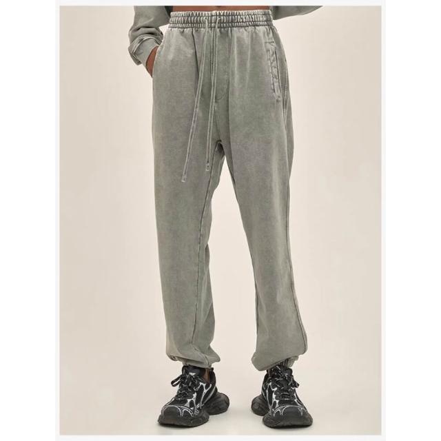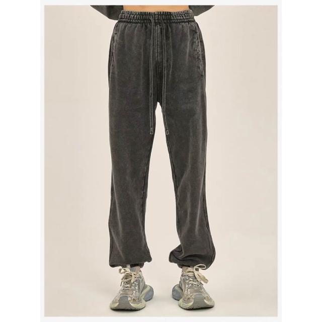 重磅蠟染水洗做舊長褲 我只賣不透的白T寬鬆長褲 美式高街潮牌425克純棉毛圈蠟染水洗束腳棉褲
