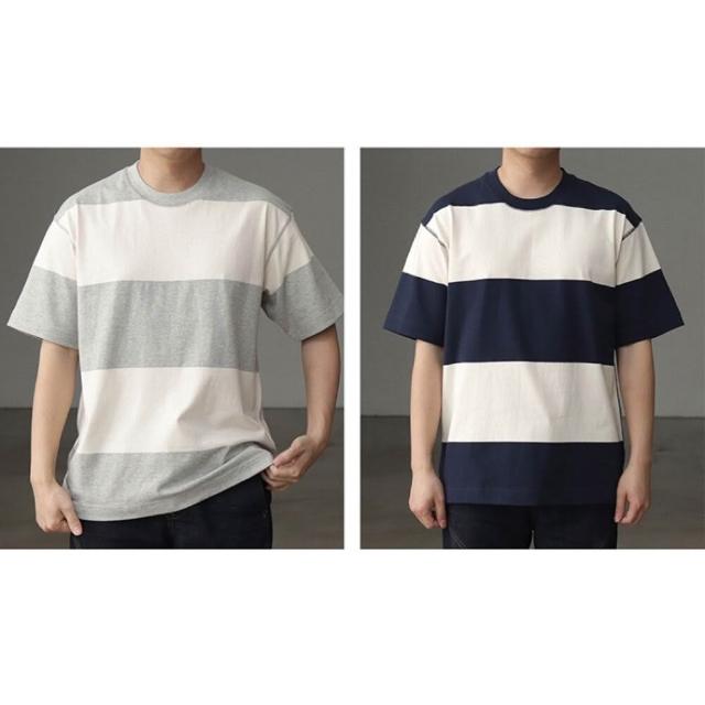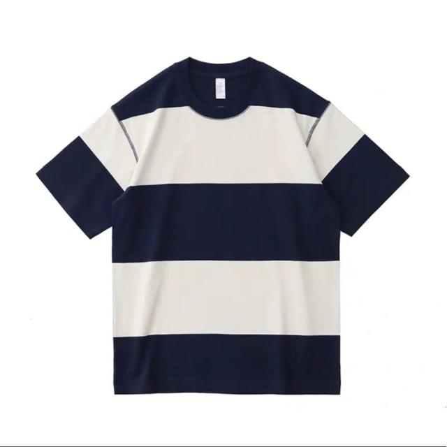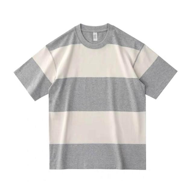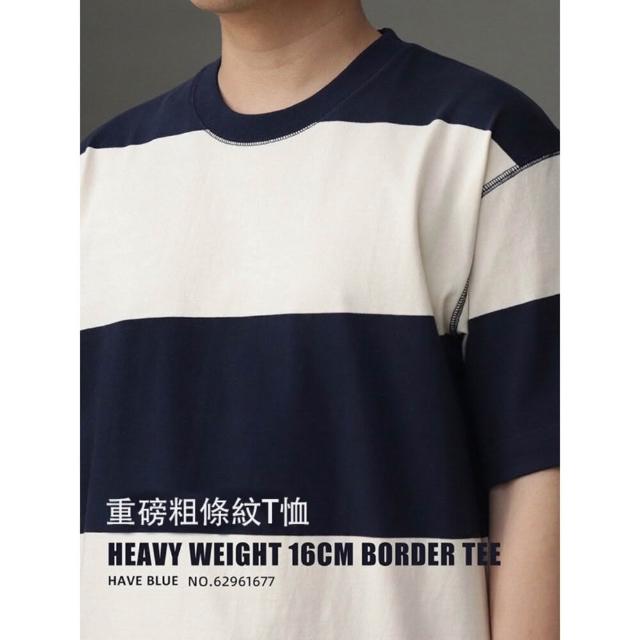 重磅超寬距粗條紋微寬鬆上衣 我只賣不透的白T260克重磅短袖T恤 條紋T 重磅條紋短袖 圓領