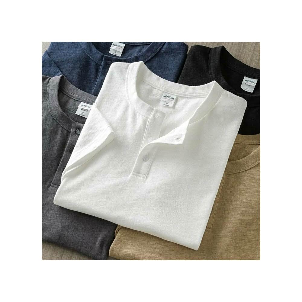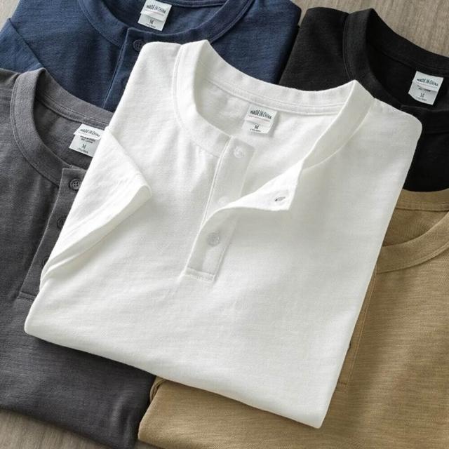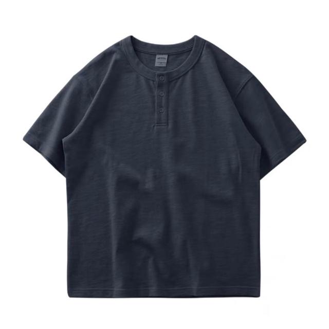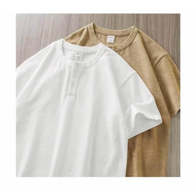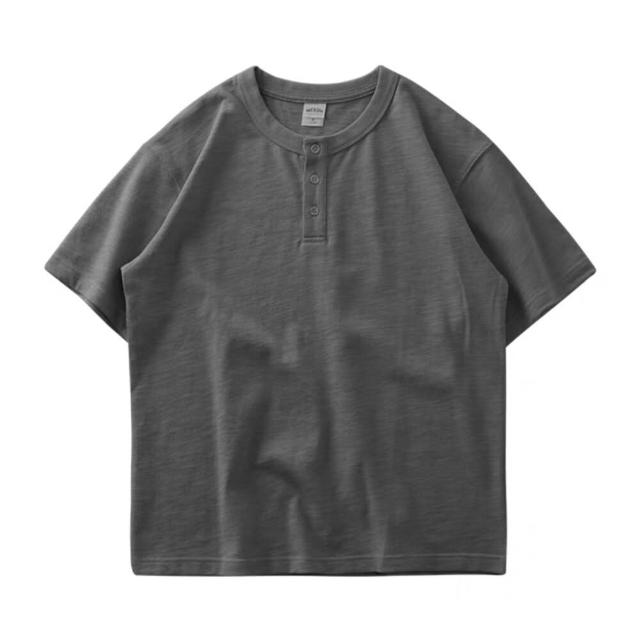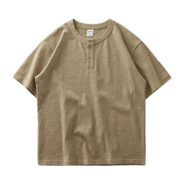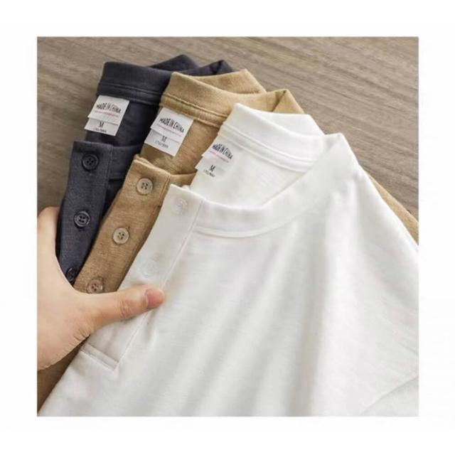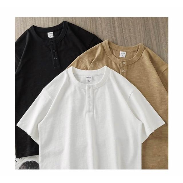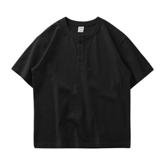 重磅320克竹節棉加厚寬鬆版亨利領短T 我只賣不透的白T320硬漢TEE小領口 重磅 無縫筒織(不透)