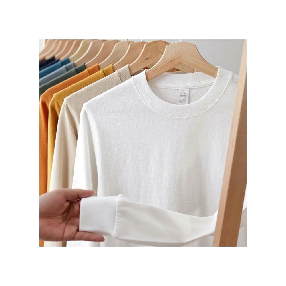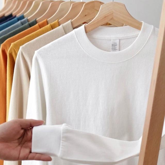 250克 特小領口基本款 我只賣不透的白T不透 高密度純棉重磅厚實純色長袖T 復古圓領長T 單穿(重磅)