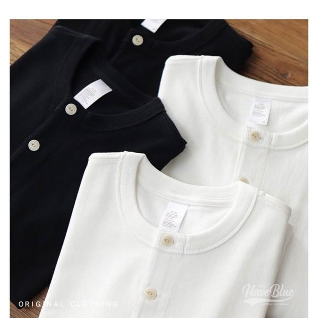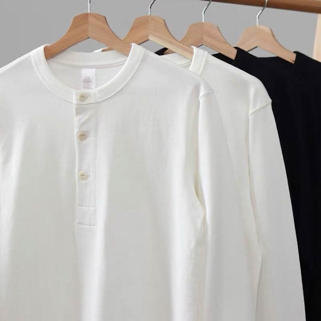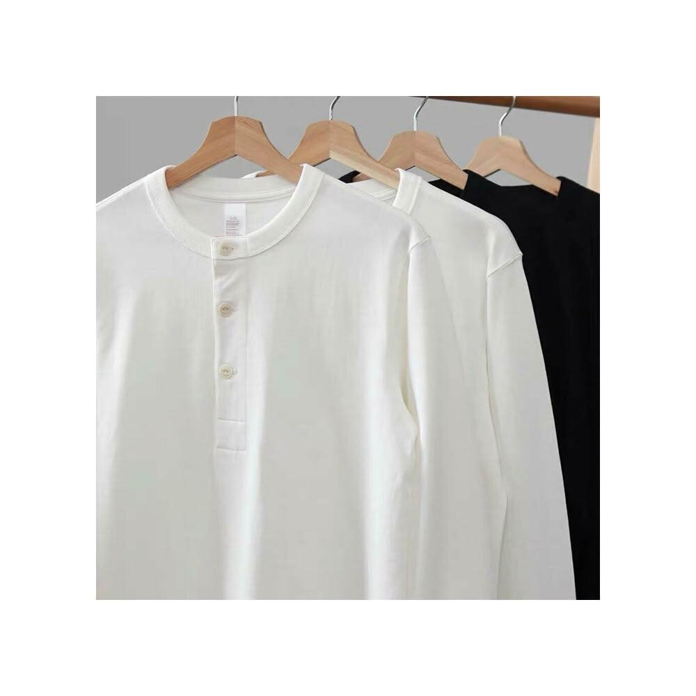 亨利領 長袖重磅加厚版我只賣不透的白T 360G長袖亨利領重磅亨利領阿美咔嘰美式復古寬版白色休閒(不透)