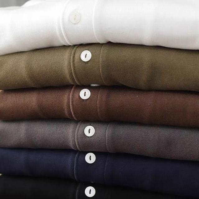 - 重磅厚實280克亨利領長袖T恤