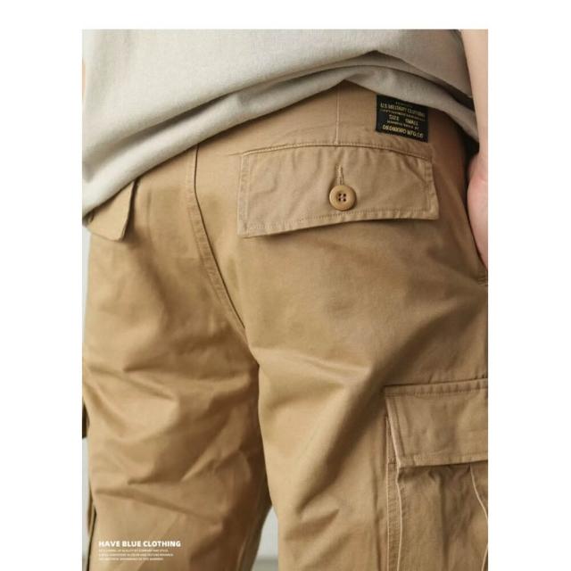 vintage美式復古多口袋軍褲阿美咔嘰寬鬆厚重磅闊腿直筒工裝褲男