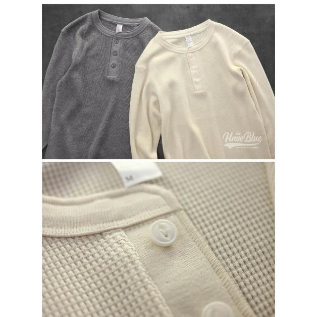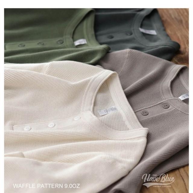 硬漢亨利領 長袖 華夫格修身版我只賣不透的白T美式復刻350克休閑亨利衫覆古重磅TEE高品質華夫(純棉)