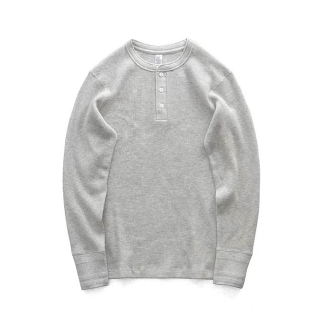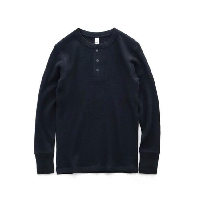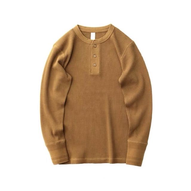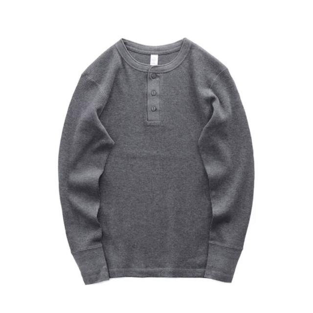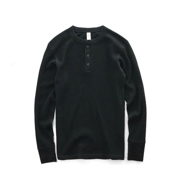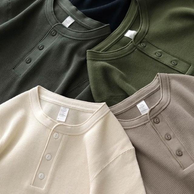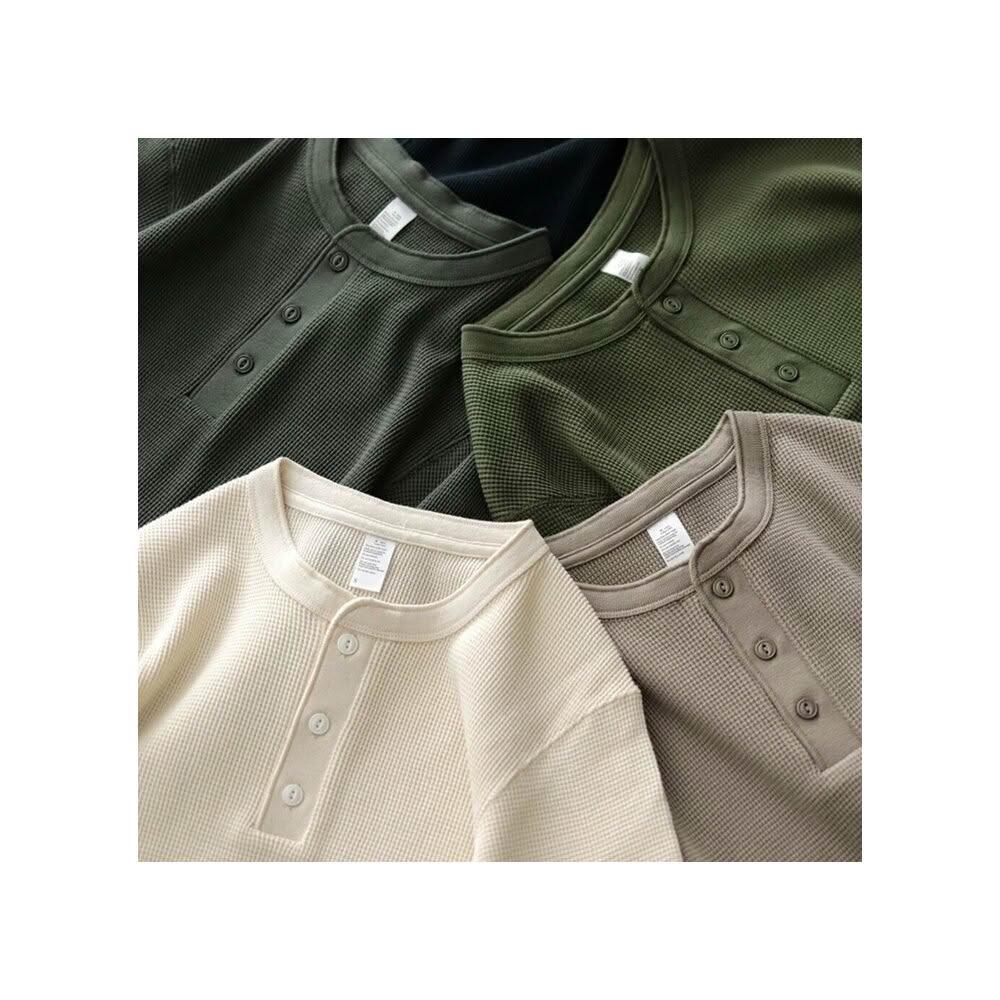 硬漢亨利領 長袖 華夫格修身版我只賣不透的白T美式復刻350克休閑亨利衫覆古重磅TEE高品質華夫(純棉)
