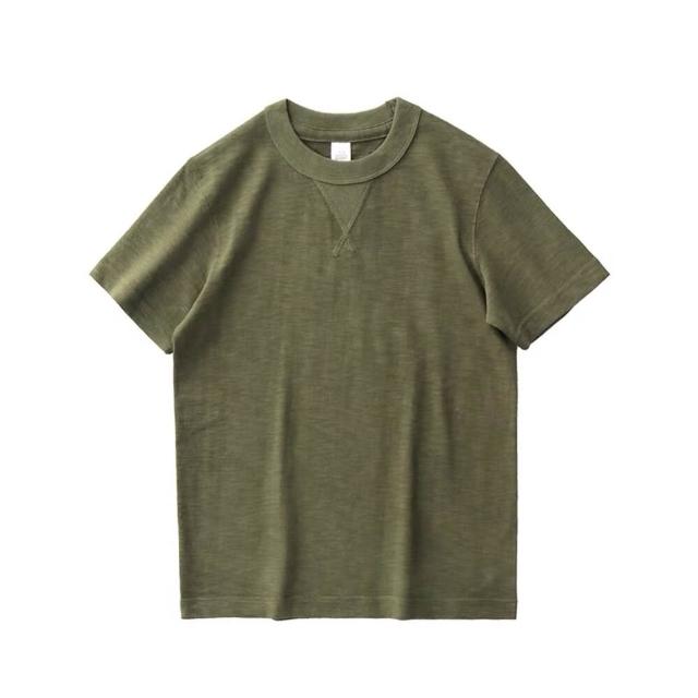 竹節棉最重磅版本我只賣不透的白T短袖竹節棉300g肉厚重磅竹節紗竹節棉短袖T恤軍綠炭(不透 白t 純棉)
