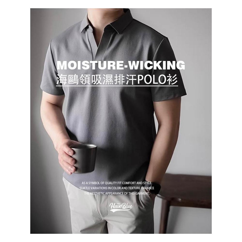 海鷗領吸濕排汗男POLO衫 我只賣不透的白T 230克 海鷗翻領短袖T恤輕熟風涼感抗菌通勤polo衫夏季