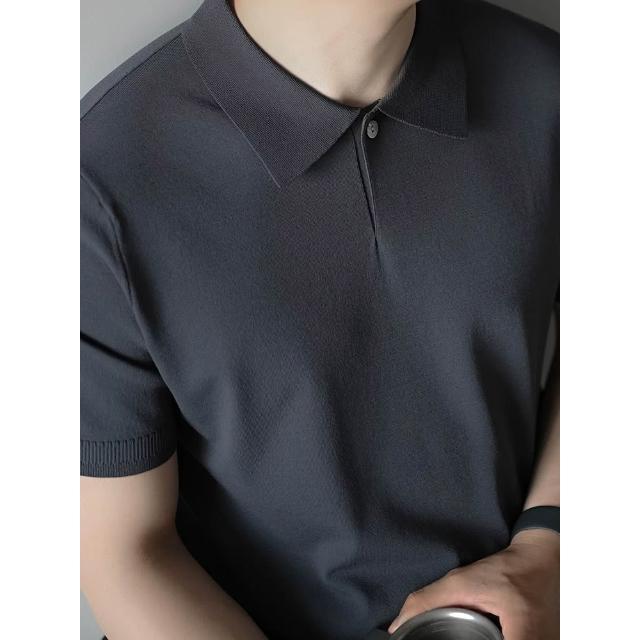 頂奢伊力特涼感單扣POLO衫【我只賣不透的白T】 高端天絲亞麻混紡男輕熟老錢風針織POLO衫夏季通勤透氣短袖T恤透氣男