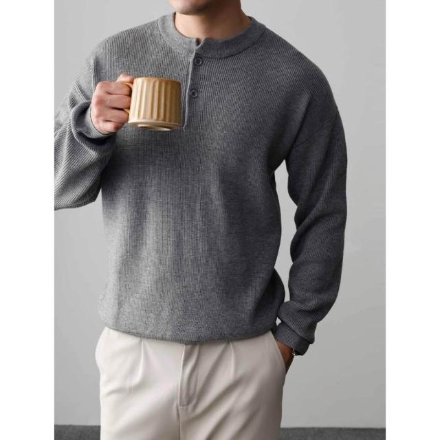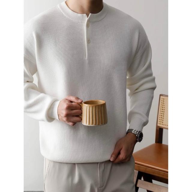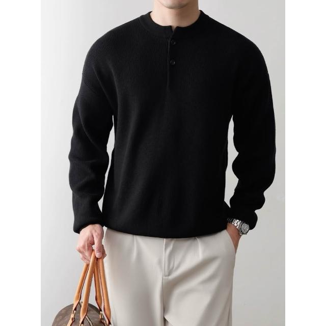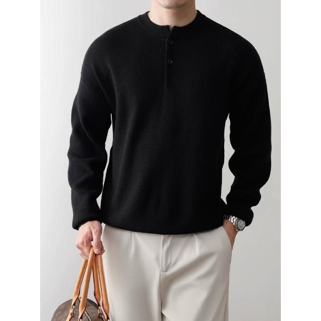 老錢風重磅630克亨利領毛衣男 【我只賣不透的白T】亨利領毛衣 重磅針織衫 加厚抗起球毛衣 長袖百搭上衣 冬季必備款