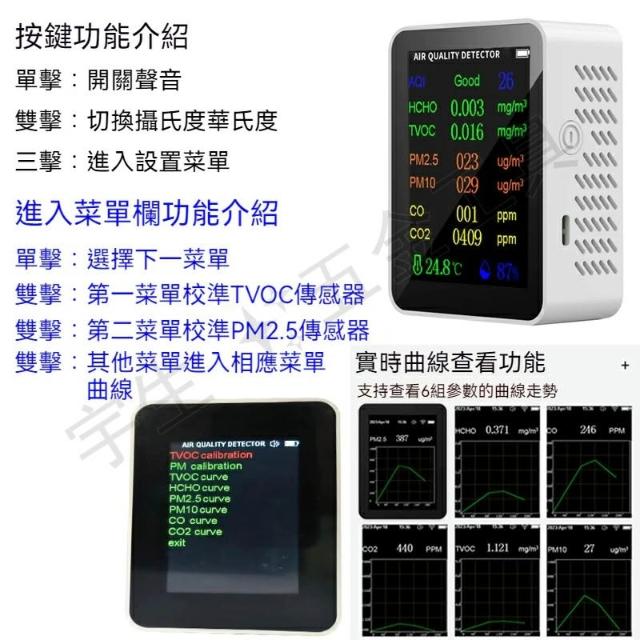 🔧空氣品質檢測儀 PM2.5 十合一 溫度 濕度 甲醛檢測 濃度檢測儀 二氧化碳偵測器 空氣檢測 甲醛測試儀