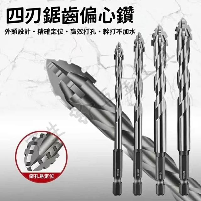 🔧新款四刃鋸齒鑽 偏心鑽 鋸齒偏心鑽 6.35mm六角柄鋸齒鑽頭 可幹打 全瓷磚 陶瓷 玻璃 大理石 混凝土