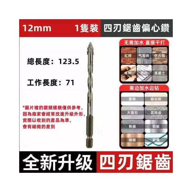 🔧新款四刃鋸齒鑽 偏心鑽 鋸齒偏心鑽 6.35mm六角柄鋸齒鑽頭 可幹打 全瓷磚 陶瓷 玻璃 大理石 混凝土