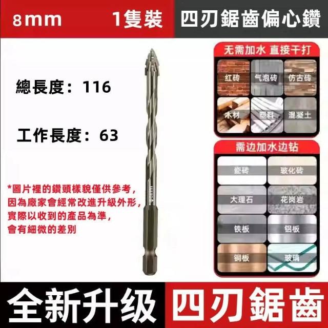 🔧新款四刃鋸齒鑽 偏心鑽 鋸齒偏心鑽 6.35mm六角柄鋸齒鑽頭 可幹打 全瓷磚 陶瓷 玻璃 大理石 混凝土