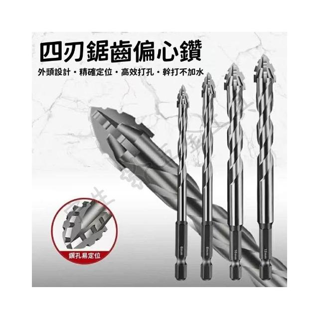 🔧新款四刃鋸齒鑽 偏心鑽 鋸齒偏心鑽 6.35mm六角柄鋸齒鑽頭 可幹打 全瓷磚 陶瓷 玻璃 大理石 混凝土