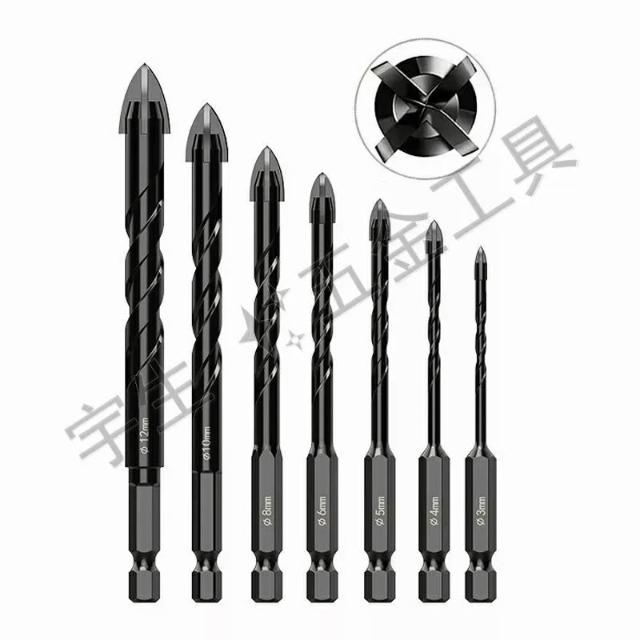 🔧四刃十字霸王頭 四刃霸王鑽 六角柄霸王鑽 陶瓷三角鑽 瓷磚 紅磚 玻璃 大理石 混凝土開孔 鑽頭 鑽尾