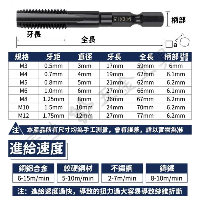 🔧六角柄攻牙刀 電鑽攻牙刀 手電鑽絲錐 攻牙器 絲攻 電鑽牙刀 公制攻牙刀 公制絲錐 六角柄絲攻 絲錐