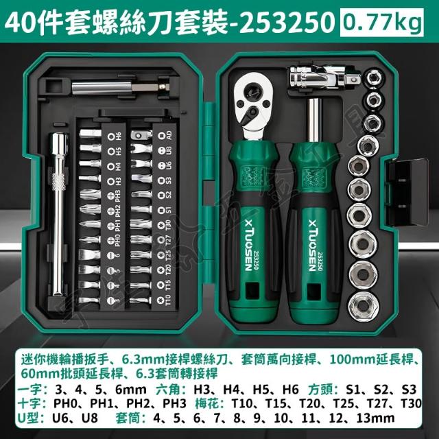 🔧40件工具組 棘輪扳手 螺絲刀 汽修工具組 工具組 起子組 螺絲刀套組 套筒 套筒組 套筒棘輪板手 汽修 拓森