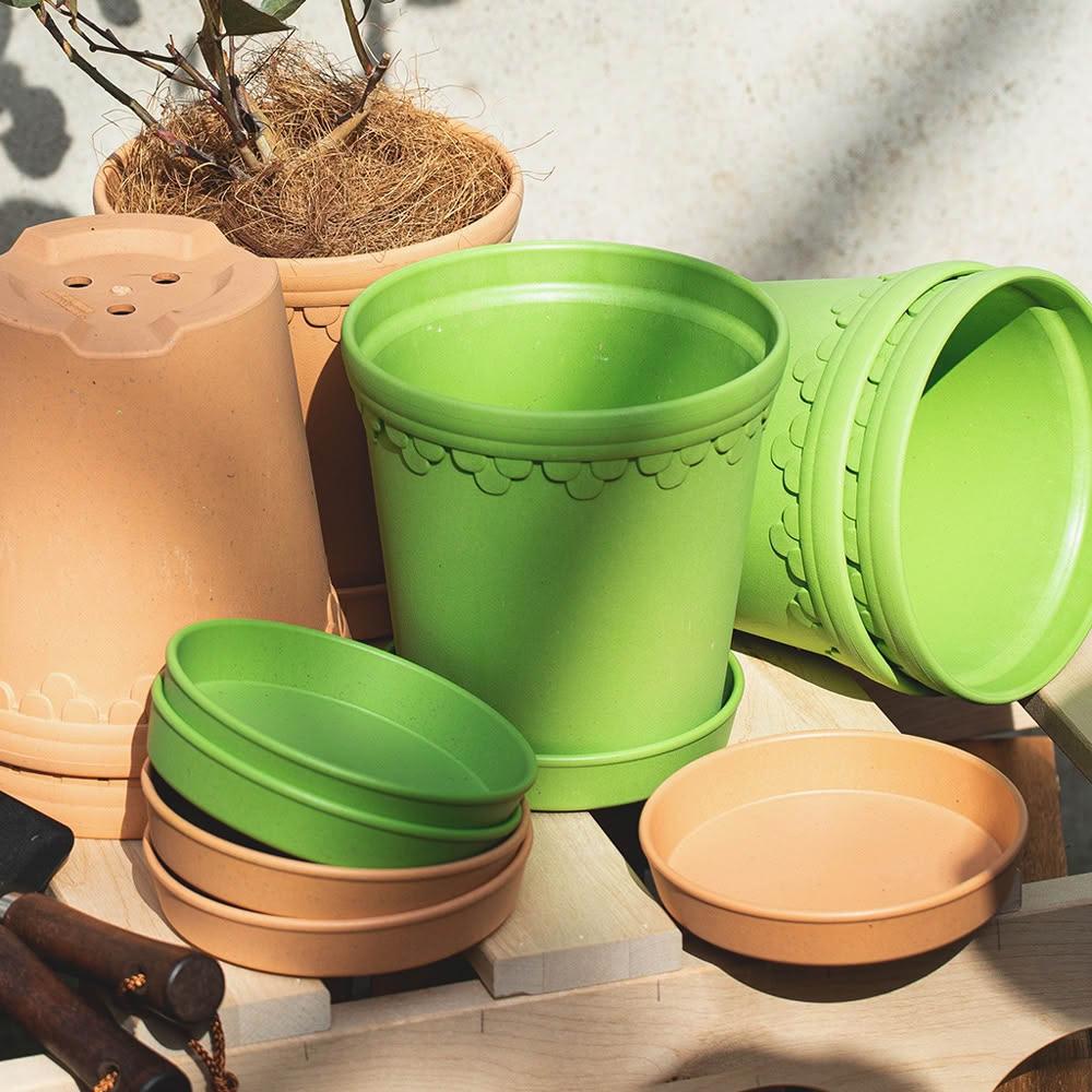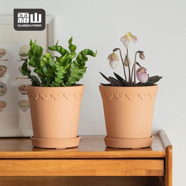 SHIMOYAMA 霜山復古風植纖環保花盆(附托盤)-多色可選