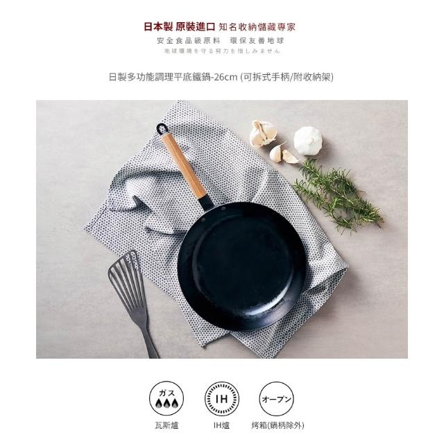 日本like-it 日製多功能調理平底鐵鍋-26cm (可拆式手柄/附收納架)