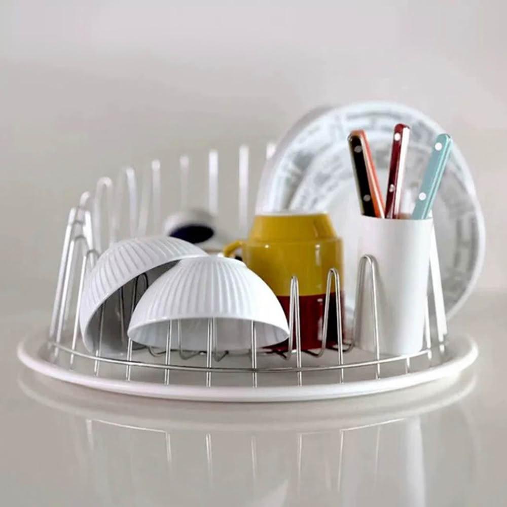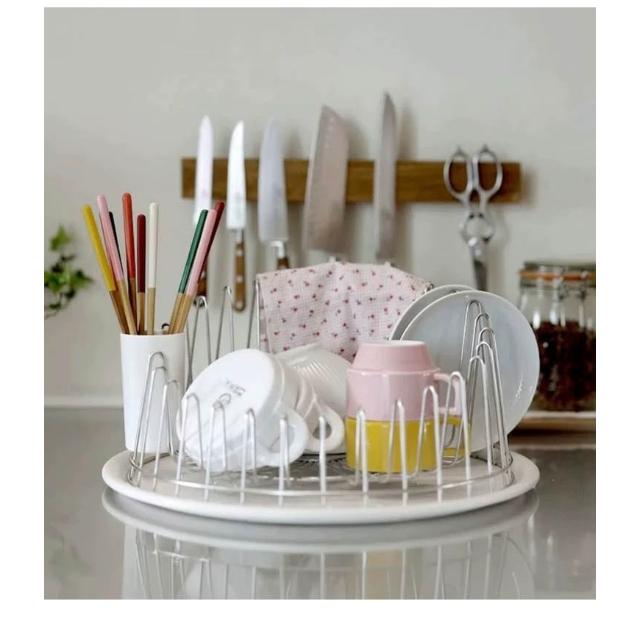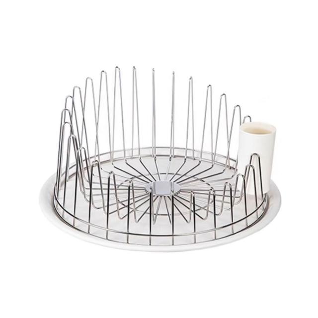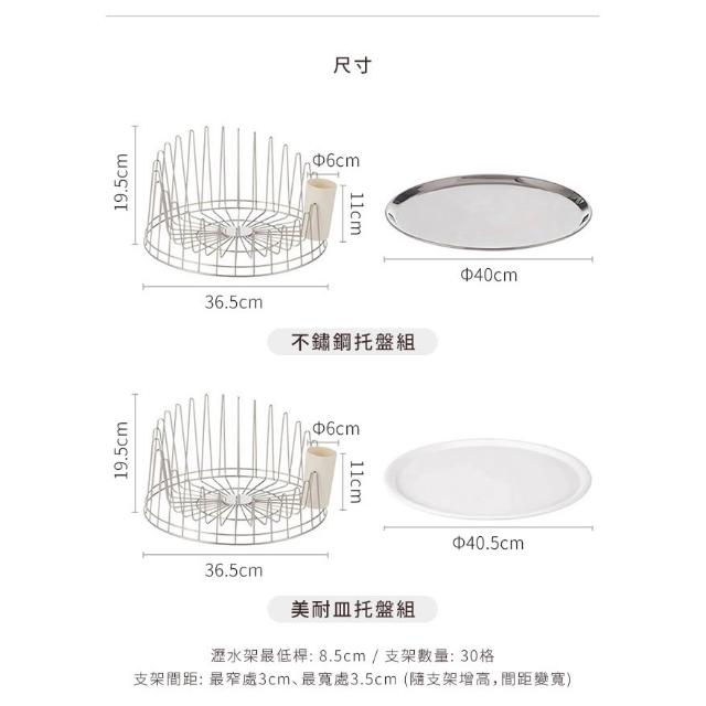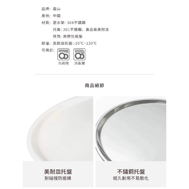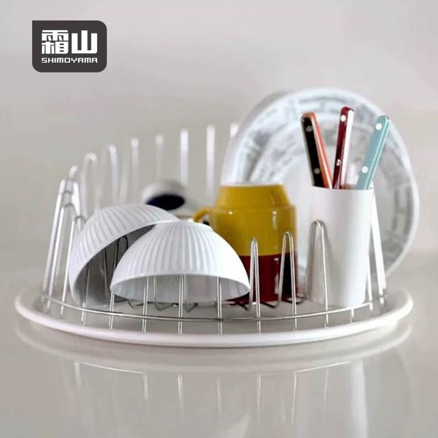 SHIMOYAMA 霜山304不鏽鋼圓形杯架/碗盤瀝水架(附筷筒)-仿瓷托盤組