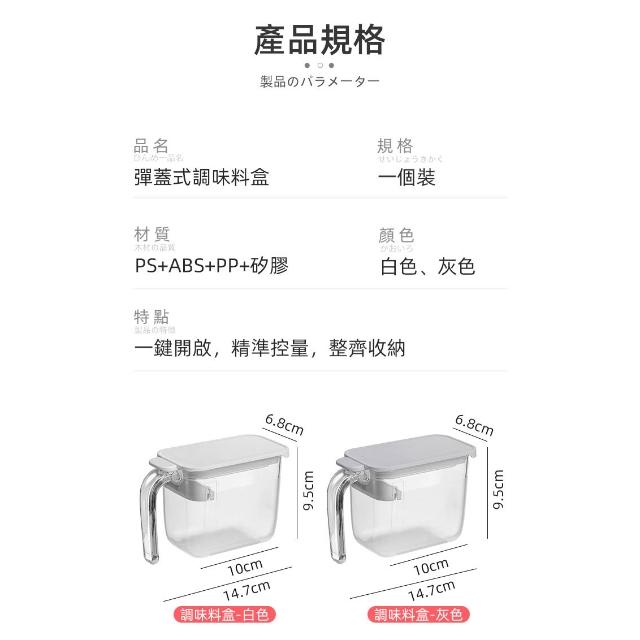 - 盒內刮板可控制用量且防勺子滑落