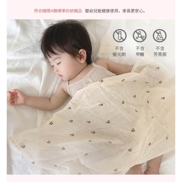 SHIMOYAMA 霜山樱桃印花嬰幼兒棉紗蓋毯(附收納袋)-112x112cm