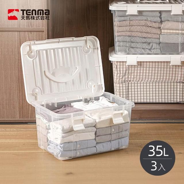 TENMA 天馬手提式掀蓋收納整理箱(附輪)-35L-3入