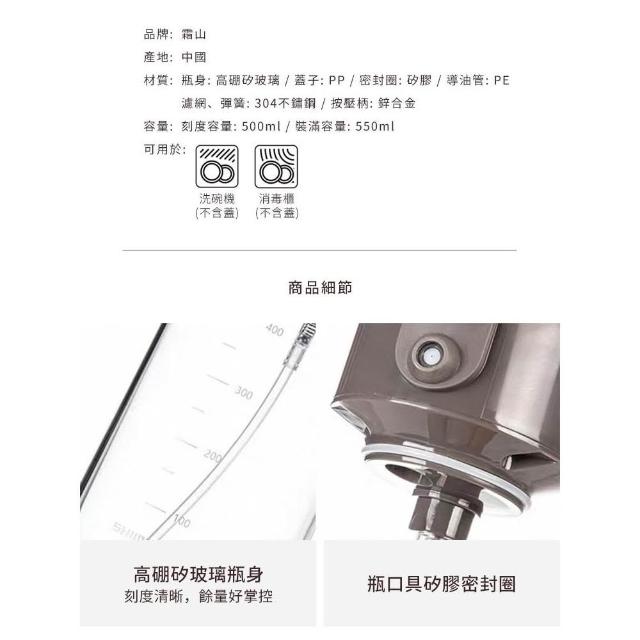 SHIMOYAMA 霜山按壓式噴倒兩用油瓶/玻璃油壺-550ml-多色可選