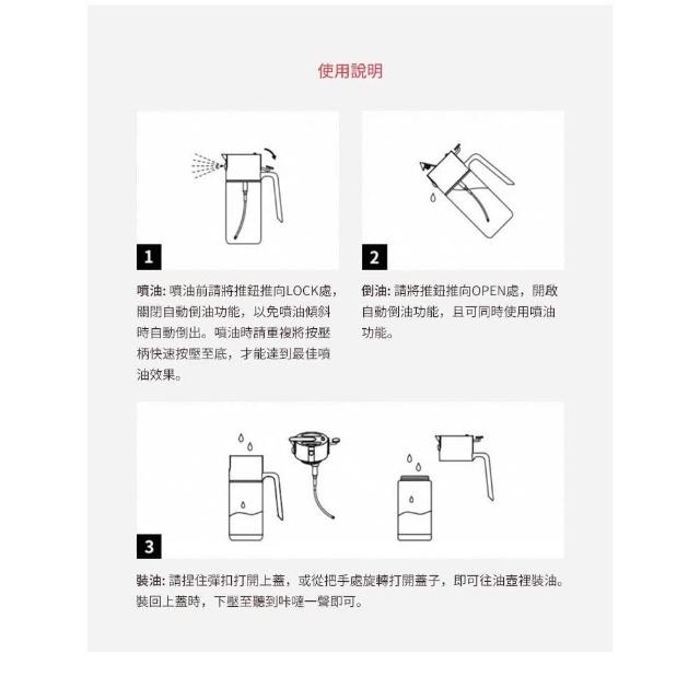 - 重力感應自動開闔,便於單手倒油