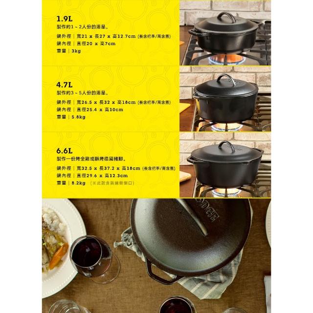 LODGE美國製雙耳鑄鐵荷蘭鍋-6.6L (適用型號L10SC3鍋蓋/L10DOL3)
