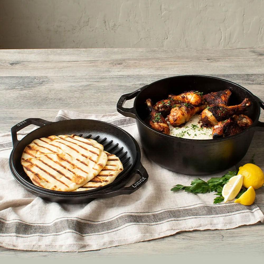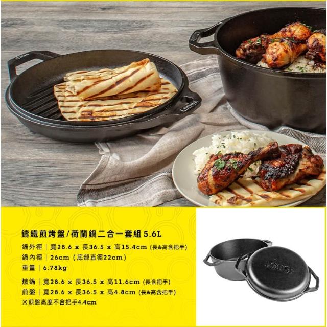 LODGE主廚系列 美國製鑄鐵煎烤盤/荷蘭鍋二合一套組-5.6L (LC6DD)