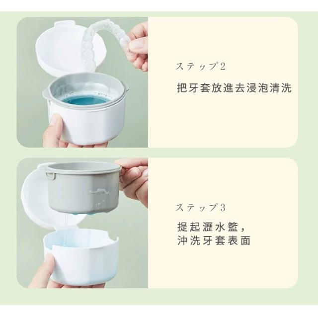 Imakara便攜式雙層瀝水牙套/假牙清洗收納盒(附清潔刷)