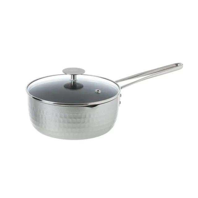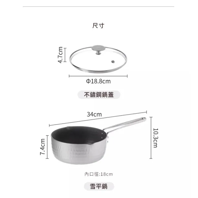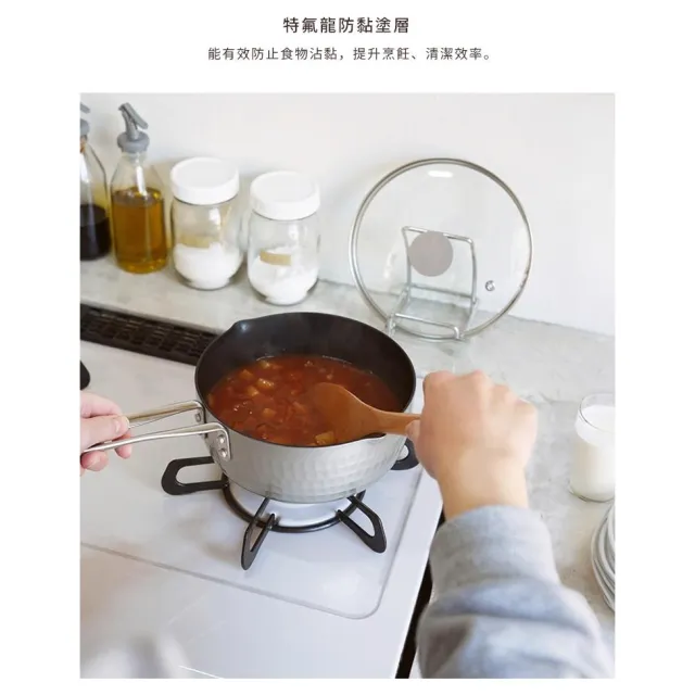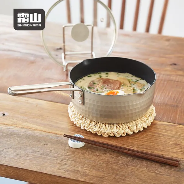 SHIMOYAMA 霜山鋁製槌目紋不沾雪平鍋(附耐熱玻璃蓋)-18cm