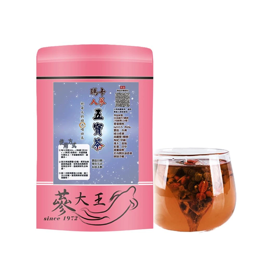 蔘大王『瑪卡人蔘五寶茶►共1組』(6gX10入/組)真男人活力之源▪增強體力║特加高麗蔘▪枸杞▪瑪卡▪黃精▪紅棗▪甘草║無茶鹼養生茶包