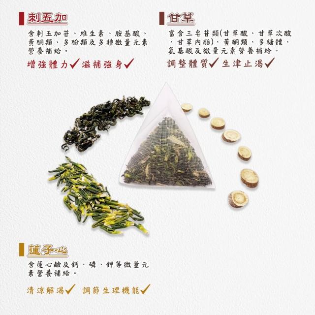 蔘大王『退火蓮子心茶►共3組』(6gX10入/組)清涼解渴▪降火氣▪可冷泡║特加刺五加▪甘草║無咖啡因三角茶包