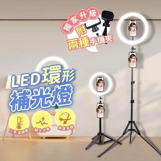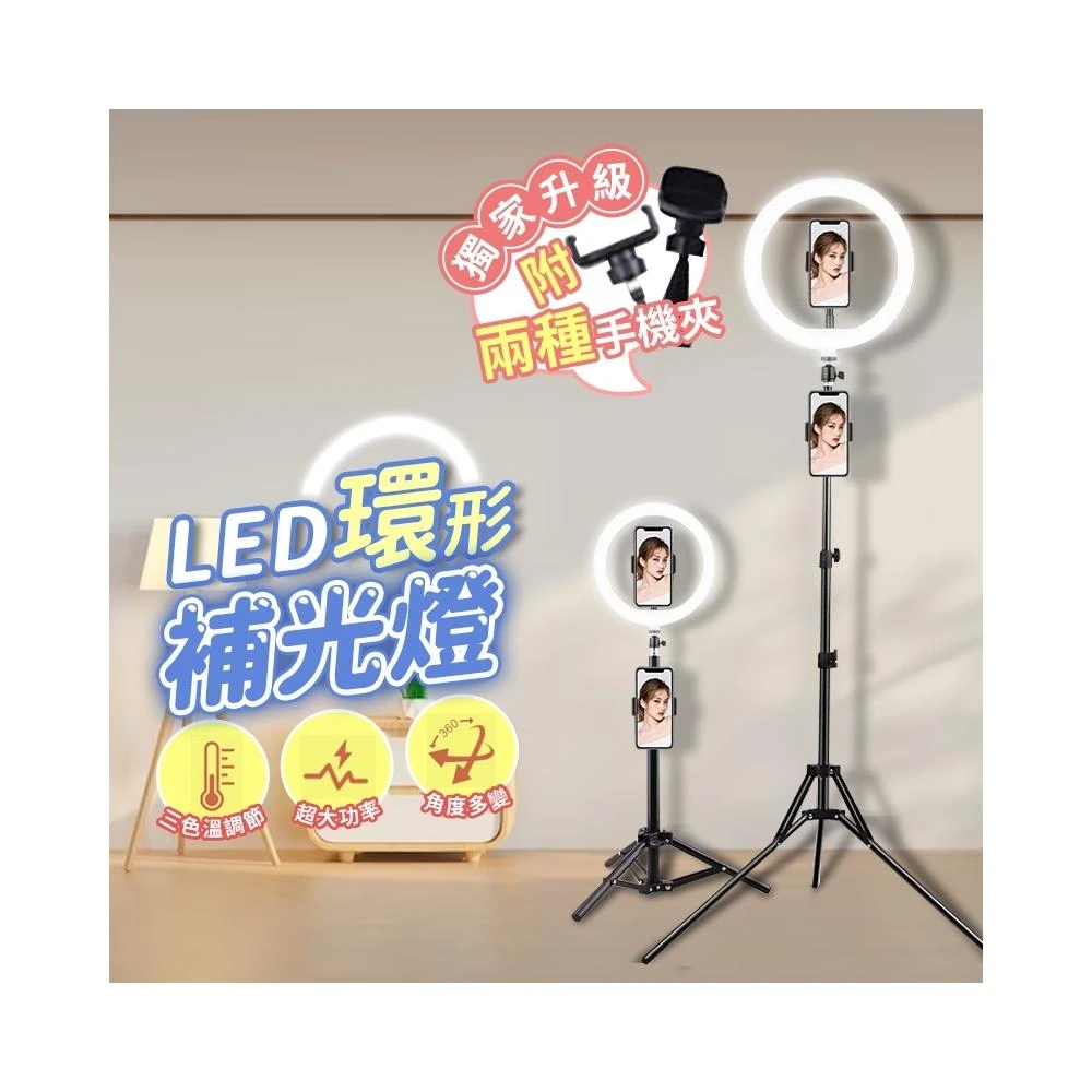 補光燈 LED環形補光燈+直播架+手機夾 三色可調 攝影燈 直播腳架 直播燈 補光燈 美光燈腳架