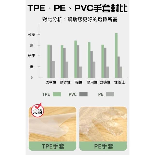 加厚TPE手套 一次性透明手套 100入/盒 食品級 厚款 無粉手套 橡膠手套 拋棄式手套