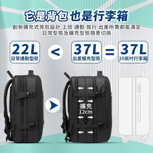 BANGE商務後背包 22L-37L大容量 可擴展 商務後背包 出差包 旅遊旅行 USB接頭 多功能電腦包