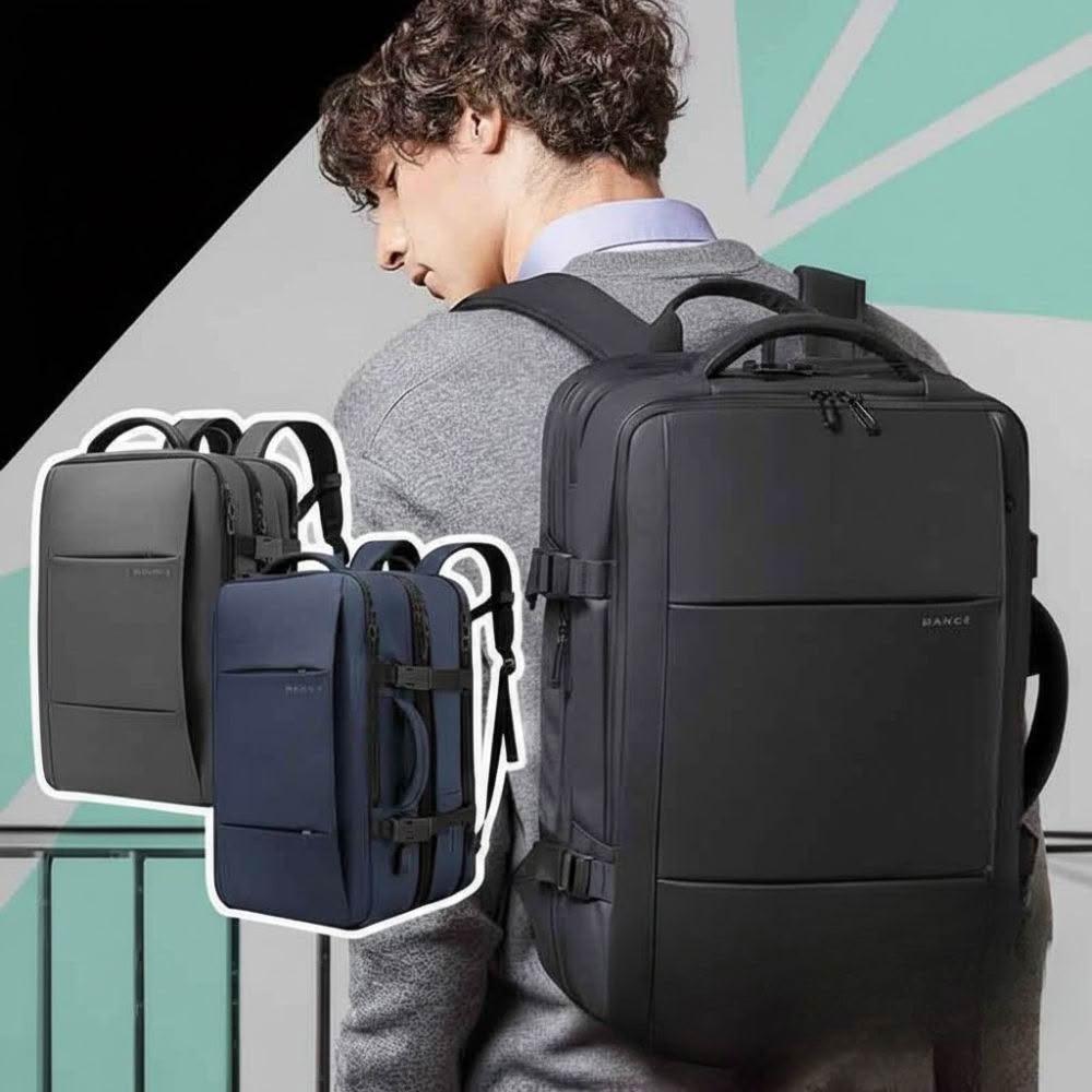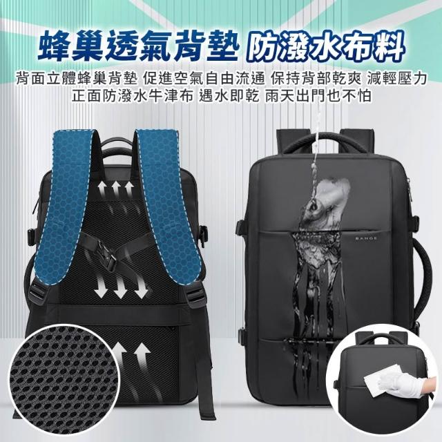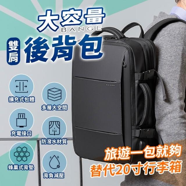 BANGE商務後背包 22L-37L大容量 可擴展 商務後背包 出差包 旅遊旅行 USB接頭 多功能電腦包