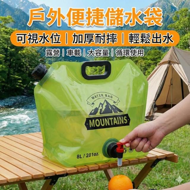 可站立8L儲水袋 旅行水袋 露營儲水袋 水袋 露營水袋 塑料袋 折疊水袋 旅行 蓄水袋 裝水袋