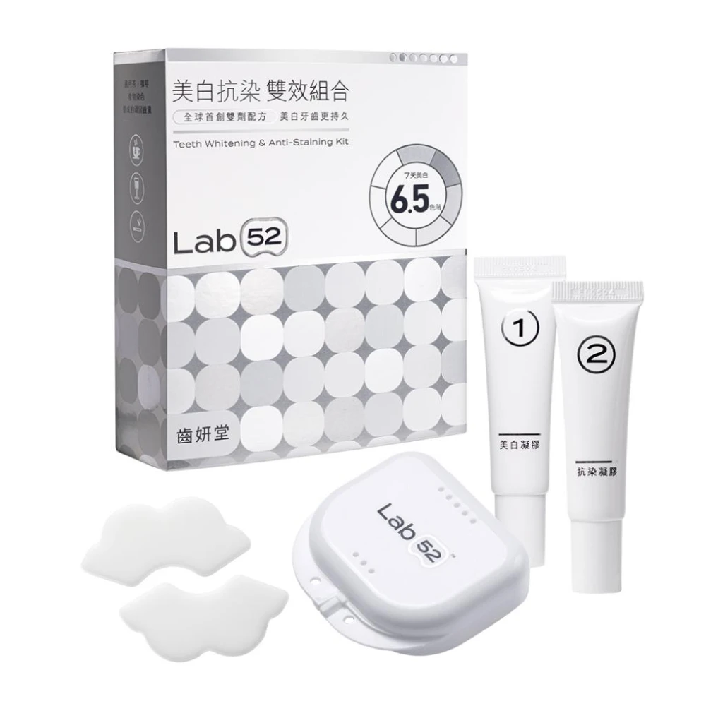 Lab52 齒妍堂牙齒美白抗染雙效組|雙劑美白|牙齒美白組 雙效凝膠 美白牙托 抗染護理 深層亮白去齒漬 牙齒護理 成人牙膏