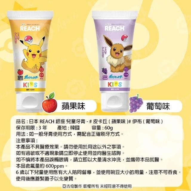麗奇REACH - 寶可夢兒童牙膏60g|2-8歲適用|含氟量600ppm|含氟防蛀牙膏 木醣醇配方 含氟 皮卡丘 伊布